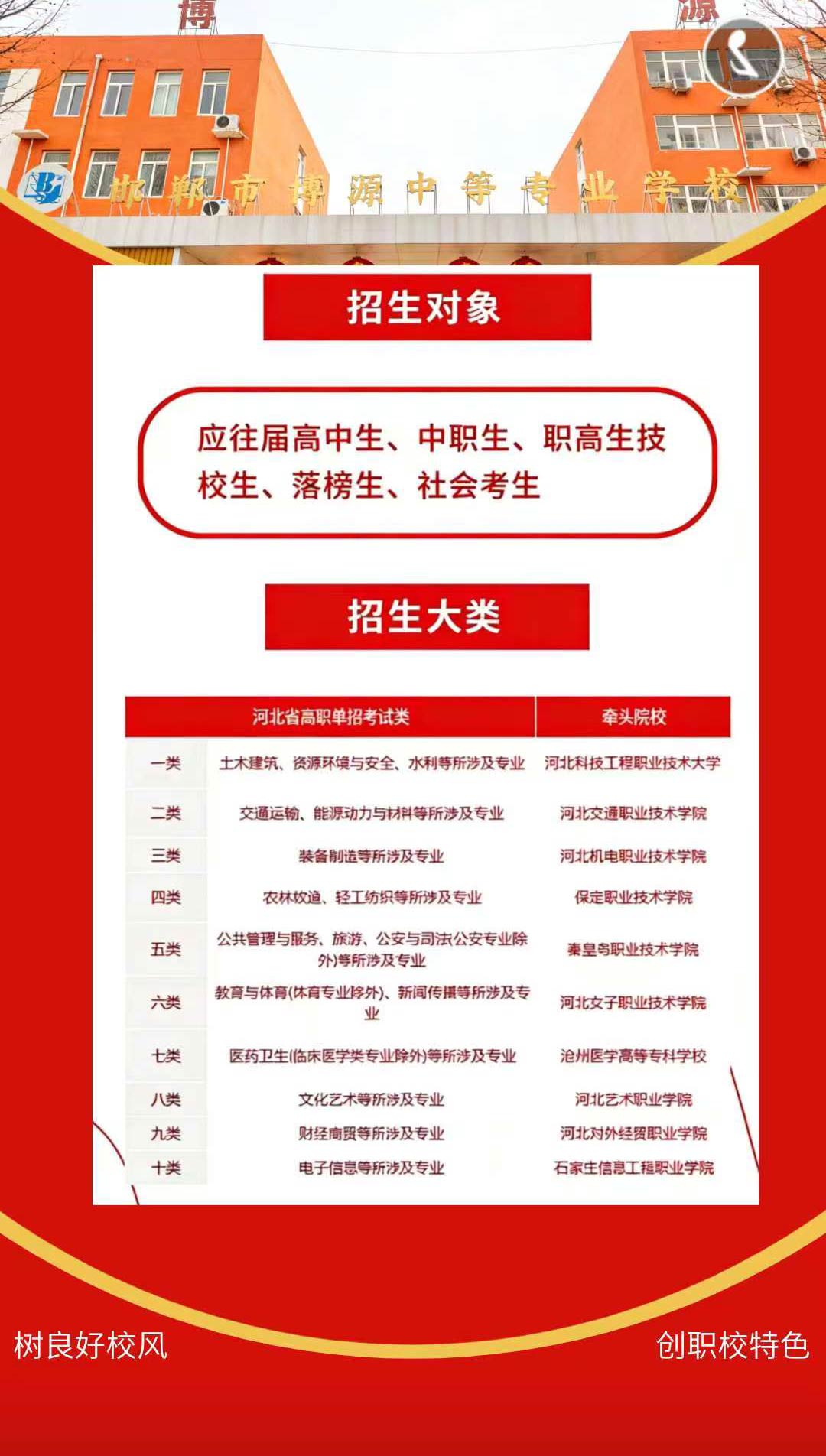 2026邯郸博源单招集训营火热招生中! 单招集训招生对象 高二潜力学子:模考成绩低于380分的你,不必焦虑 我们以科学训练挖掘潜力,助你弯道超车; 中职追梦人: 中专/职高/技校二年级在校生,掌握核心考点,提前锁定优质院校 再战精英&社会考生: 2025年单招失利的追梦者、 渴望重返校园的社会考生,这里是你的全新起点! 专属教学+实战演练,让每一份努力都通向理想学府!